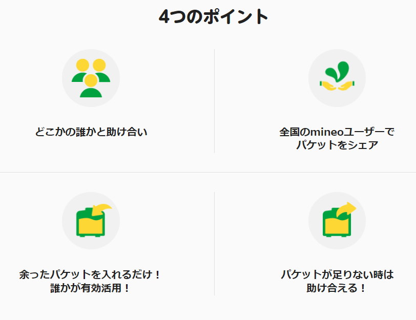 mineoユーザー同士持ちつ持たれつでパケットを譲り合うことができるのがmineoの良いところですね。