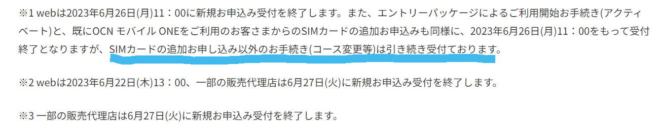なので、新規受付は6月26日で終わるけど、現在ocnモバイルoneを使っている人は引き続き使えるみたいです。