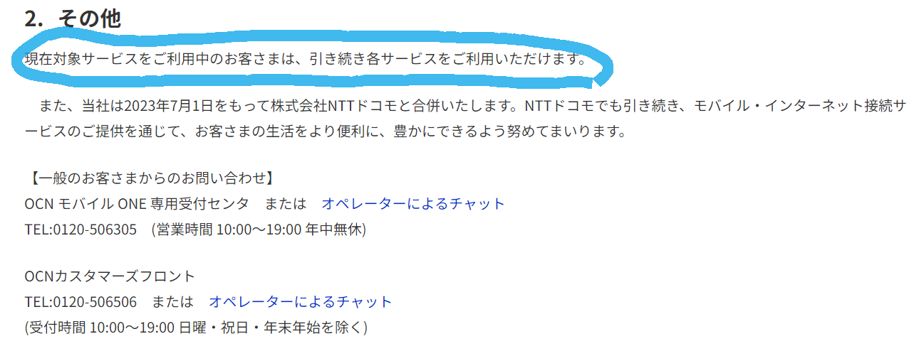 7月1からocnモバイルoneはドコモに吸収合併されるのでocnモバイルoneは事実上なくなってしまうことになります。